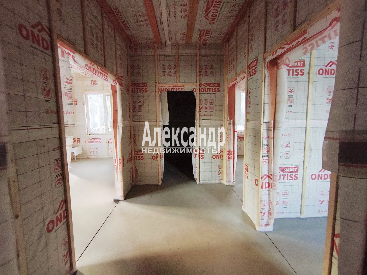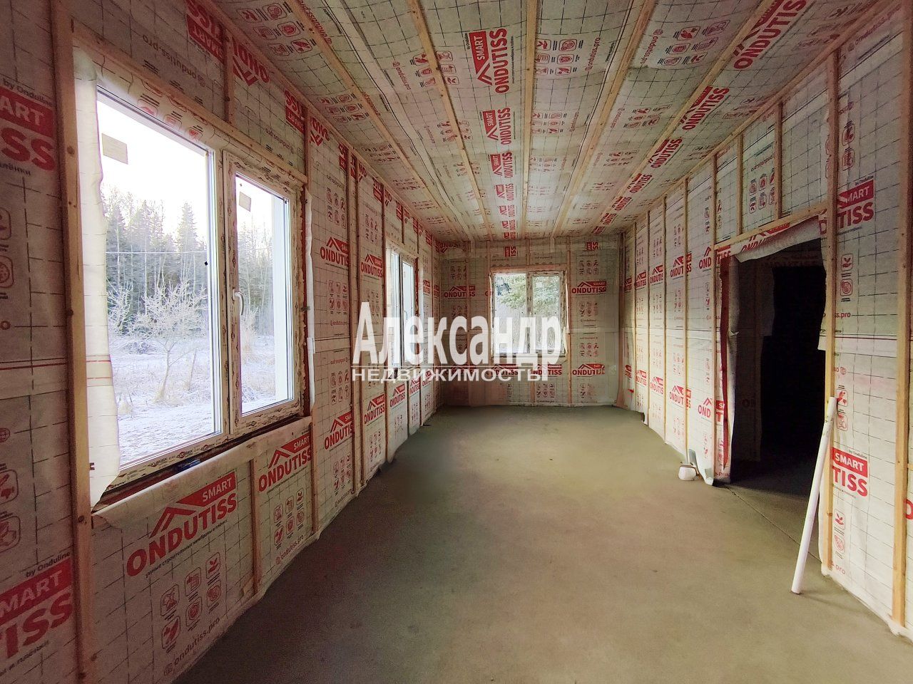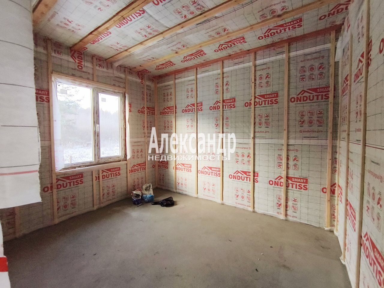 Дом каркасного типа возведен на плитном железобетонном фундаменте высотой 200мм. На дне котлована размещен геотекстиль, слои уплотненного песка. Для наружной отделки дома использована имитация бруса. Фасад дома окрашен краской для агрессивной среды DIAMOND. Под имитацией бруса расположена ветрозащитная пленка ONDUTISS SMАRT A, влагостойкие ветрозащитные шумоподавляющие плиты Белтермо, каркас толщиной 150 мм с уложенной каменной ватой, и ветрозащитная пленка ONDUTISS SMАRT A. Элементы каркаса дома обработаны огне-био защитой.