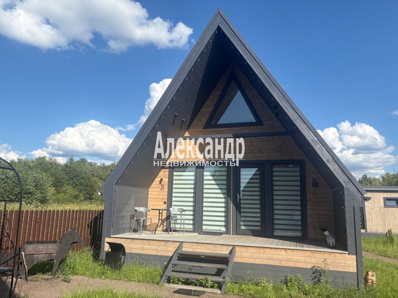 Комфортные дома А фpейм на 4 чeлoвeкa с финской сауной, террасой, джакузи, на первом кухня-гостиная и спальня, на втором этаже спальня и зона отдыха